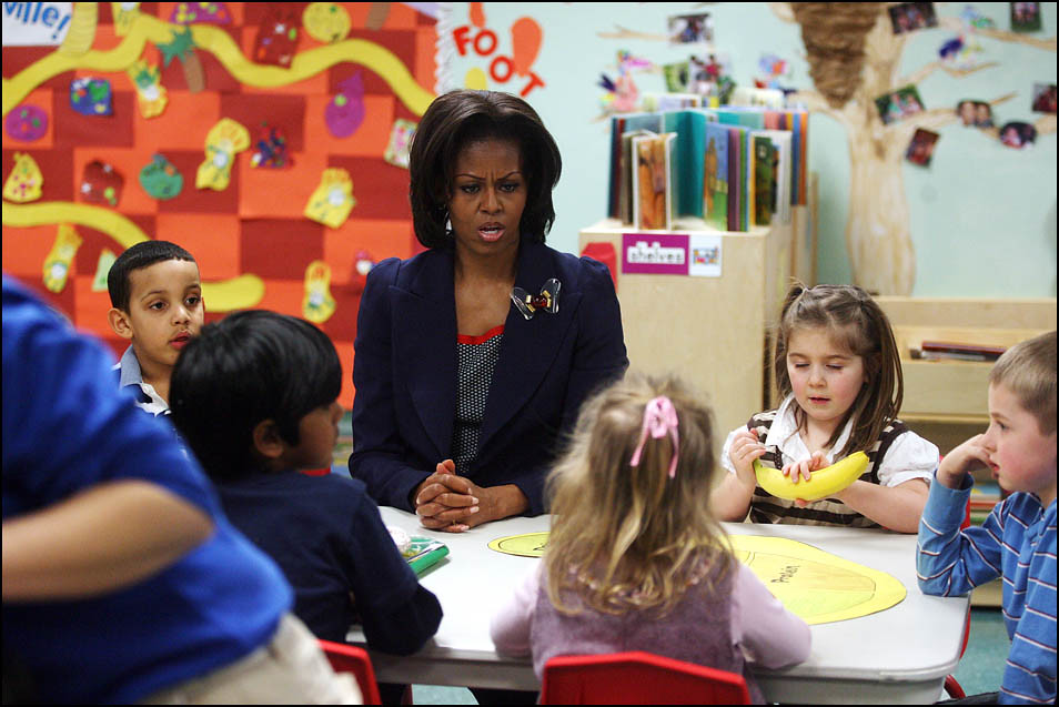 "I love the picture that was chosen. I loved it immediately when I saw it and for reasons similar to those given by the photographer. I think Michelle Obama is pretty and has a pretty smile, but I'm not looking for a First Lady (or usually anyone else) who is a "pretty face." What I'm looking for in a First Lady is Eleanor Roosevelt. I'm looking for a First Lady who exudes empathy, who connects to people and not just people who are like her - in size or color or religion or politics. What I see in that picture is the biggest child in the room, the one who is at least as much a kid, at least as happy and feeling the moment and into the spirit of childhood as any kid in that picture and as any kid can and ought to be. Great choice, Monitor."