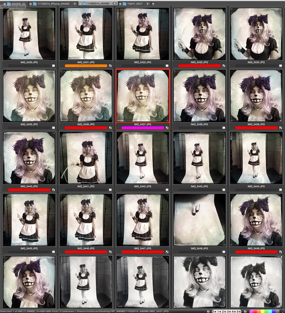 When all was said and done, I never even ingested the DSLR files until after the essay ran in print because I was happy with the results of my "Plan A." I knew the lighting wasn’t how I would have set it up if I was going to go with the DSLR. I had been to a similar event previously and had envisioned how I would shoot the series if I was going to use my DSLR. Needless to say, the lighting I set up for the Cosplay convention wasn’t even close to what I would have done if I was solely shooting 35 digi. That said, if I had seen that the other cameras weren’t working I would have made my adjustments accordingly.